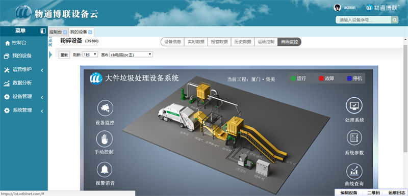 物通博聯(lián)處理垃圾設(shè)備物聯(lián)網(wǎng)為垃圾處理設(shè)備廠家實(shí)現(xiàn)全球設(shè)備統(tǒng)籌,打造一個(gè)安全監(jiān)控、設(shè)備遠(yuǎn)程維護(hù)和管理、設(shè)備遠(yuǎn)程調(diào)試、配件管理、故障告警為一體的垃圾處理設(shè)備綜合服務(wù)平臺,實(shí)現(xiàn)從“生產(chǎn)型制造”向“服務(wù)型制造”的轉(zhuǎn)型,提升生產(chǎn)效率、產(chǎn)品質(zhì)量和技術(shù)支持水平。