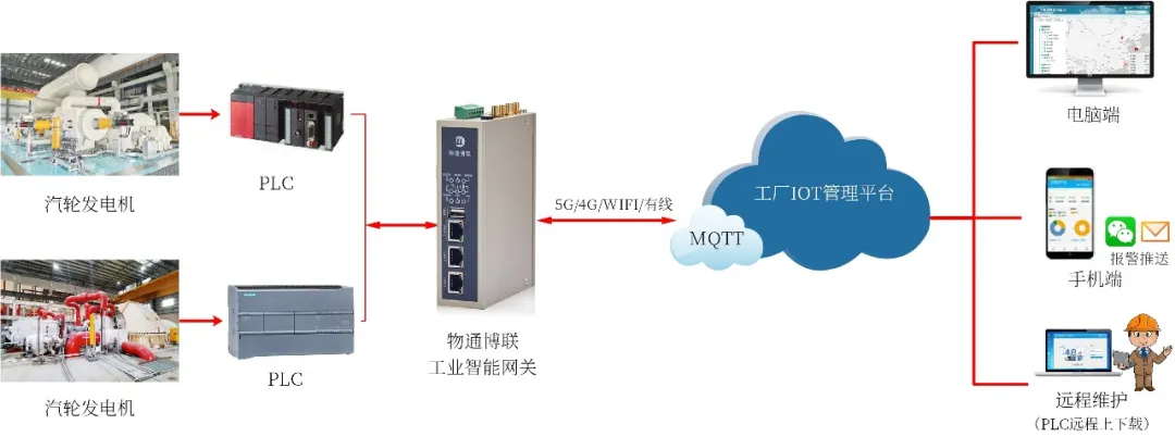 物通博聯·工業智能網關支持采集PLC、傳感器及智能儀表等設備數據,實現5G/4G/WIFI/以太網等方式對接到云平臺或上位機中,同時具備斷點續傳功能,確保數據完整性與準確性。